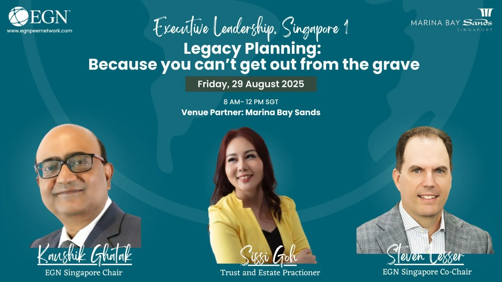 In this thought-provoking in-person event, EGN brings together top executives for an honest, essential conversation on a topic we often avoid: legacy planning.